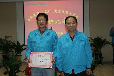| ??????? 虎步奔騰開勝景,春風(fēng)浩蕩展鴻圖。為促進(jìn)公司各單位認(rèn)真領(lǐng)會(huì)集團(tuán)公司“3333”戰(zhàn)略和利達(dá)光電“123”戰(zhàn)略的深刻內(nèi)涵,進(jìn)一步激勵(lì)員工統(tǒng)一認(rèn)識(shí),轉(zhuǎn)變觀念,增強(qiáng)信心,立足崗位,奮發(fā)有為,努力實(shí)現(xiàn)公司2010年經(jīng)營(yíng)目標(biāo),3月26日晚上7點(diǎn),利達(dá)光電黨總支在104#四樓培訓(xùn)室舉辦了“貫徹落實(shí)123,突出特色大發(fā)展”演講比賽。利達(dá)光電總經(jīng)理李智超和各單位員工代表一起來(lái)到演講比賽現(xiàn)場(chǎng),聆聽我們利達(dá)員工春天的戰(zhàn)歌,給參賽選手們帶來(lái)了莫大的鼓勵(lì)和支持。在充滿激情的《學(xué)習(xí)123 踐行123》的詩(shī)朗誦中演講比賽拉開了帷幕。當(dāng)晚共有11名選手參加比賽,演講內(nèi)容以123戰(zhàn)略為指導(dǎo),緊密結(jié)合各單位工作實(shí)際和本職工作。選手們精彩的演講中飽含著激情,帶來(lái)了感動(dòng),大家盡情暢談了自己對(duì)123戰(zhàn)略的理解,彰顯了科技人員和基層員工、奮力拼搏、積極向上的良好精神風(fēng)貌。選手們以充實(shí)的內(nèi)容、優(yōu)美的語(yǔ)言和飽滿的感情贏得了評(píng)委和聽眾們的陣陣掌聲。 ??????? 來(lái)自精密薄膜工程部的李曉佳的演講內(nèi)容給大家內(nèi)心留下了很深的觸動(dòng)。她給我們講述的是車間一名普通班長(zhǎng)的故事,那是一個(gè)愛(ài)崗敬業(yè),無(wú)私奉獻(xiàn),值得尊敬的班長(zhǎng)。為了干好自己的本職工作,盡職盡責(zé),加班加點(diǎn),即使發(fā)燒也要堅(jiān)持把工作保質(zhì)保量的完成。這是多么可貴的一種愛(ài)崗敬業(yè)的精神啊,敲動(dòng)著我們內(nèi)心最深處的感動(dòng),讓我們內(nèi)心不禁對(duì)這樣一位班長(zhǎng)肅然起敬。她是我們學(xué)習(xí)的榜樣,是愛(ài)崗敬業(yè),無(wú)私奉獻(xiàn)的榜樣。騰飛發(fā)展中的利達(dá)正是需要很多個(gè)這樣普通而又可敬的基層班長(zhǎng),帶領(lǐng)我們廣大員工用自己勤勞的雙手和智慧創(chuàng)造出一個(gè)又一個(gè)新的突破,譜寫一曲又一曲新的輝煌。 ??????? 在當(dāng)晚比賽中11位選手都激情澎湃,信心滿懷。平日里,他們都是在車間兢兢業(yè)業(yè)、默默的勞作,而今晚,他們變成了舞臺(tái)上的主角,各自在賽場(chǎng)上盡情揮灑才情,侃侃而談,在利達(dá)這片廣闊的天際里,自由地展翅翱翔。 ??????? 最終,投影事業(yè)本部獲得了此次演講比賽的組織獎(jiǎng)。朱高磊獲得了一等獎(jiǎng)。崔銀英、張文勇獲得了二等獎(jiǎng)。李慧東、田冬梅,朱清濱獲得了三等獎(jiǎng)。李曉佳、王芳、買靜、蘭勇、李文嘉獲得了比賽優(yōu)秀獎(jiǎng)。 李總在會(huì)上講話,對(duì)此次演講比賽給予了很高的評(píng)價(jià)和肯定。李總認(rèn)為此次演講比賽舉辦的很成功,很有特色,包含了利達(dá)公司各個(gè)方面,還涉及到模具,電子,安全等等多方面全方位;各位選手演講內(nèi)容都是緊密結(jié)合自身工作實(shí)際,求真務(wù)實(shí),立足本職工作崗位;參賽選手都來(lái)自基層,演講的內(nèi)容反映了公司的當(dāng)前現(xiàn)狀,代表了廣大員工的心聲。李總對(duì)選手們精彩的演講表示祝賀,并希望公司以后多多開展類似此類的活動(dòng),鼓舞士氣,展示利達(dá)員工昂揚(yáng)的斗志和激情。同時(shí)李總對(duì)選手們也給予了殷切的希望,年輕的一代代表著公司發(fā)展的希望,充滿著朝氣與活力。李總鼓勵(lì)大家一定要扎實(shí)打好基礎(chǔ),健康成長(zhǎng),實(shí)現(xiàn)自身的可持續(xù)發(fā)展,在工作中創(chuàng)造出新的輝煌。 ??????? 下圖是現(xiàn)場(chǎng)剪影: |