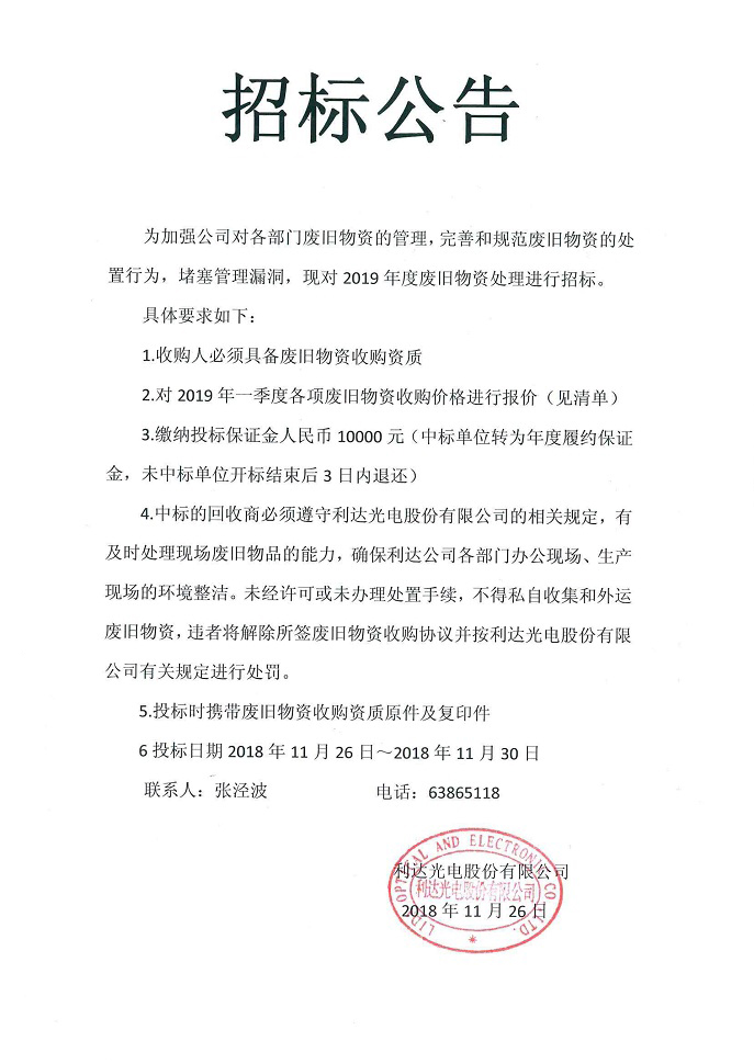 2019年度廢舊物資處理招標(biāo)公告