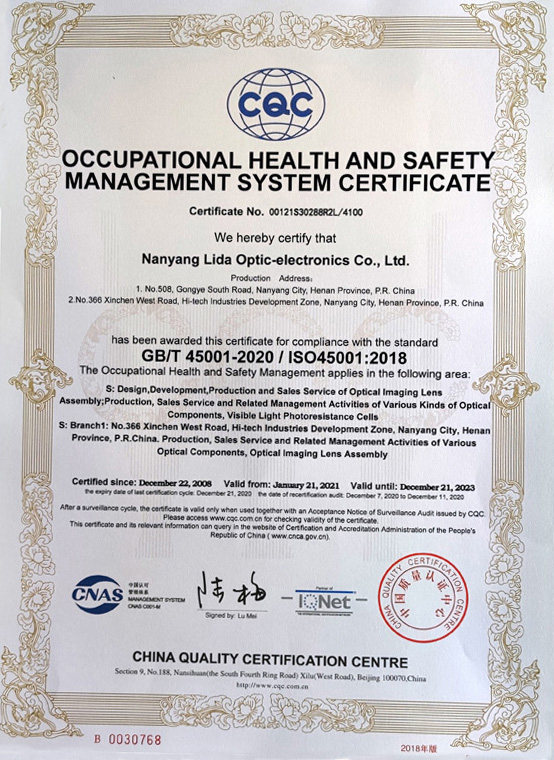 職業(yè)健康安全管理體系認(rèn)證證書(shū)(英文)